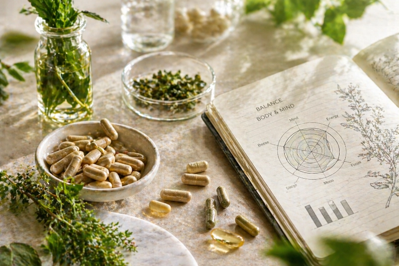 In Kombination mit anderen pflanzlichen Wirkstoffen entsteht oft ein ganzheitlicher Ansatz zur Unterstützung der Psyche.